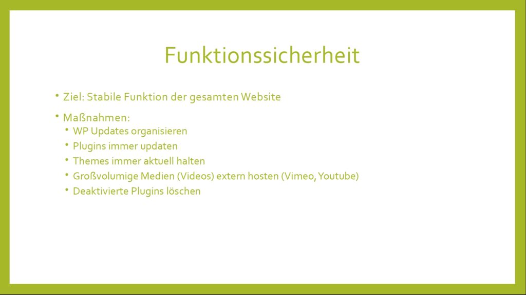 Die Sicherheit einer WordPress Website betrifft nicht nur den Schutz vor ungewolltem Zugriff (durch Hacker) sondern auch die Sicherheit der verwendeten Daten , die Rechtssicherheit und die Sicherheit vor z.B. Systemabsturz und Funktionsverlust.